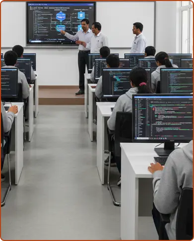 Industry-Oriented Curriculum: Structured as per AICTE, UGC and NEP guidelines with hands-on AI labs, real-time projects, cloud deployment training, certifications and internships to make students industry-ready from day one.